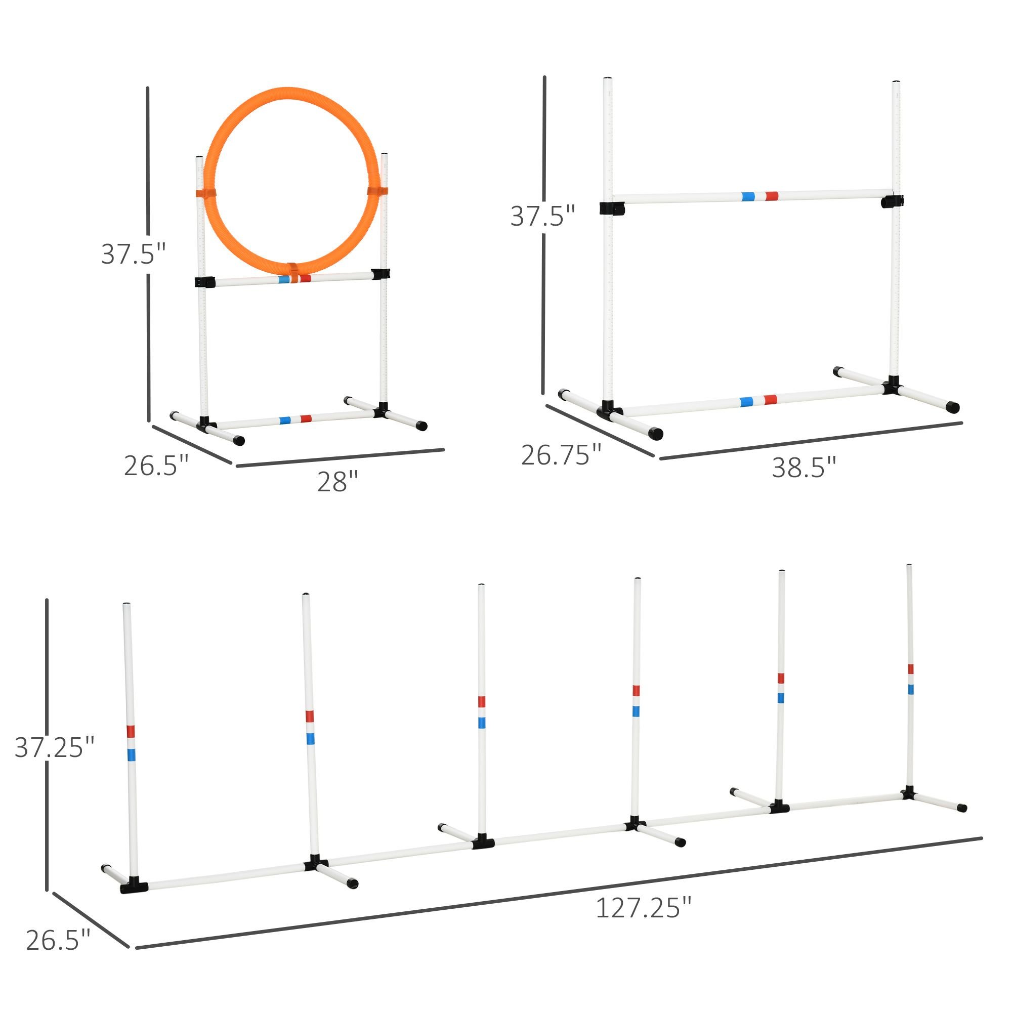 • - 3pc set,including1 high jumper, 1 jumping ring, and 6 weave poles