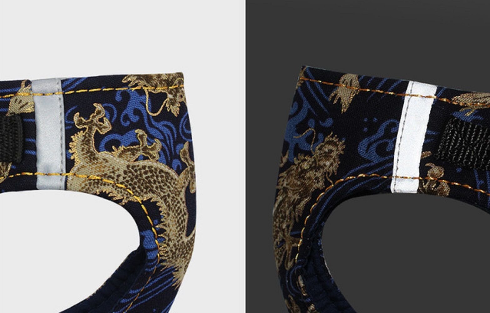 1.This comes with buckle around the waist, you can adjust the length at any number of places. The elegant dragon pattern decorates the dog like a court prince.